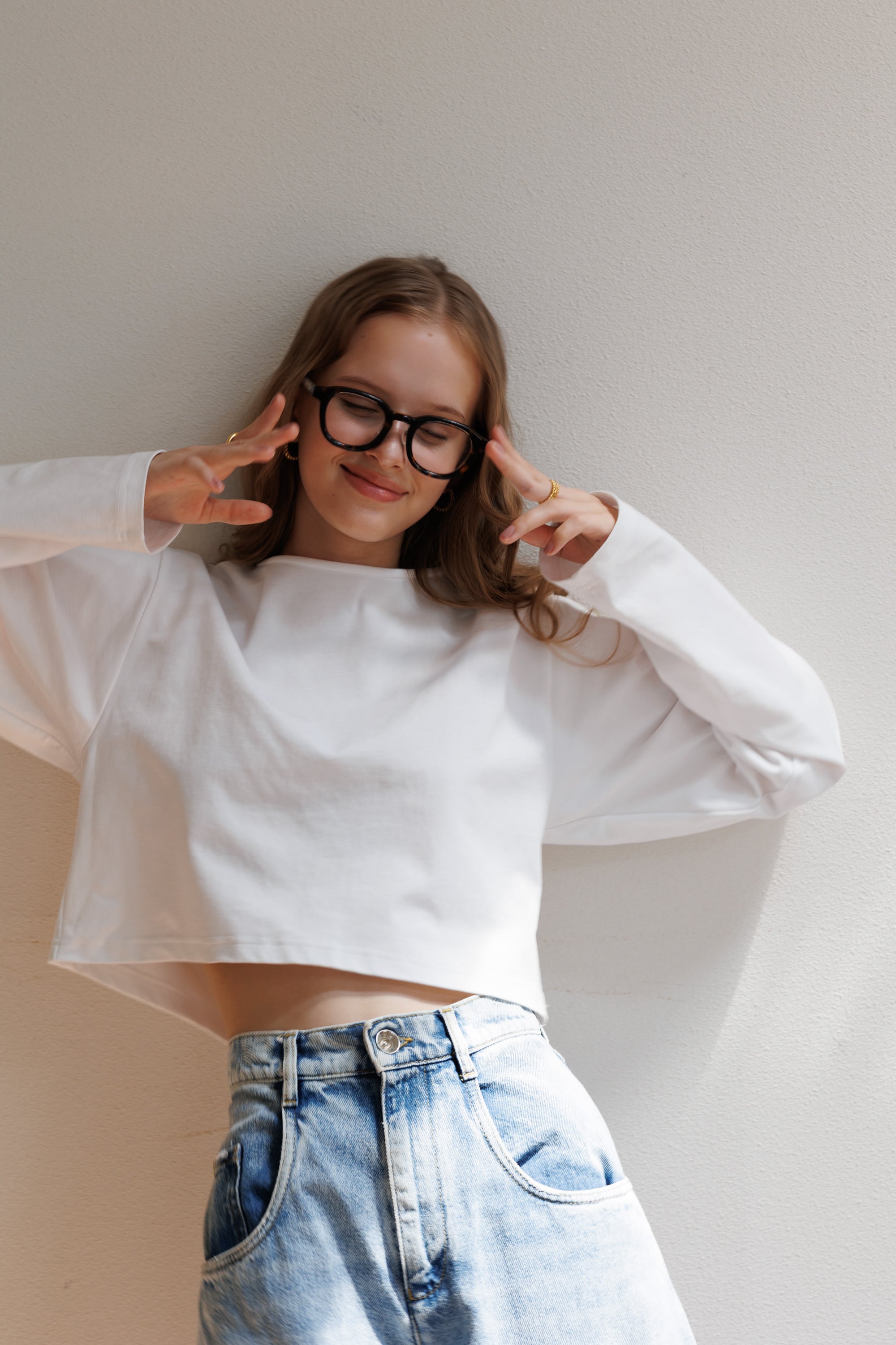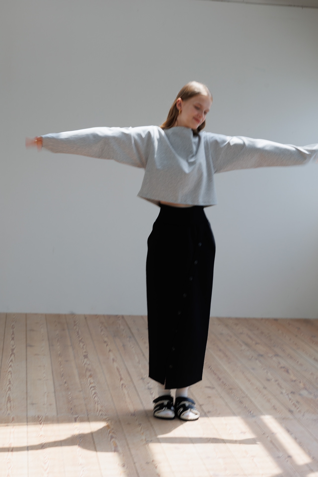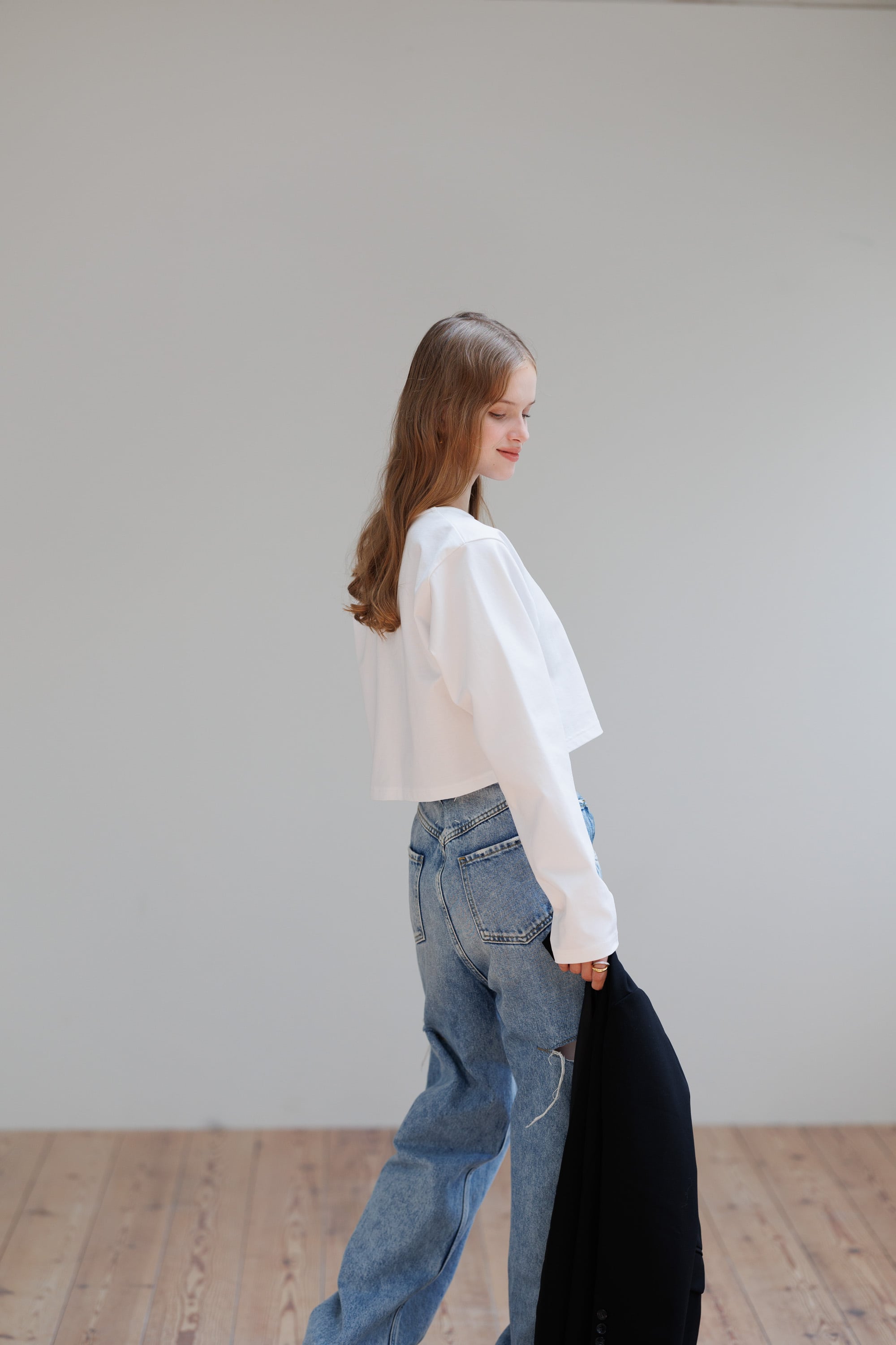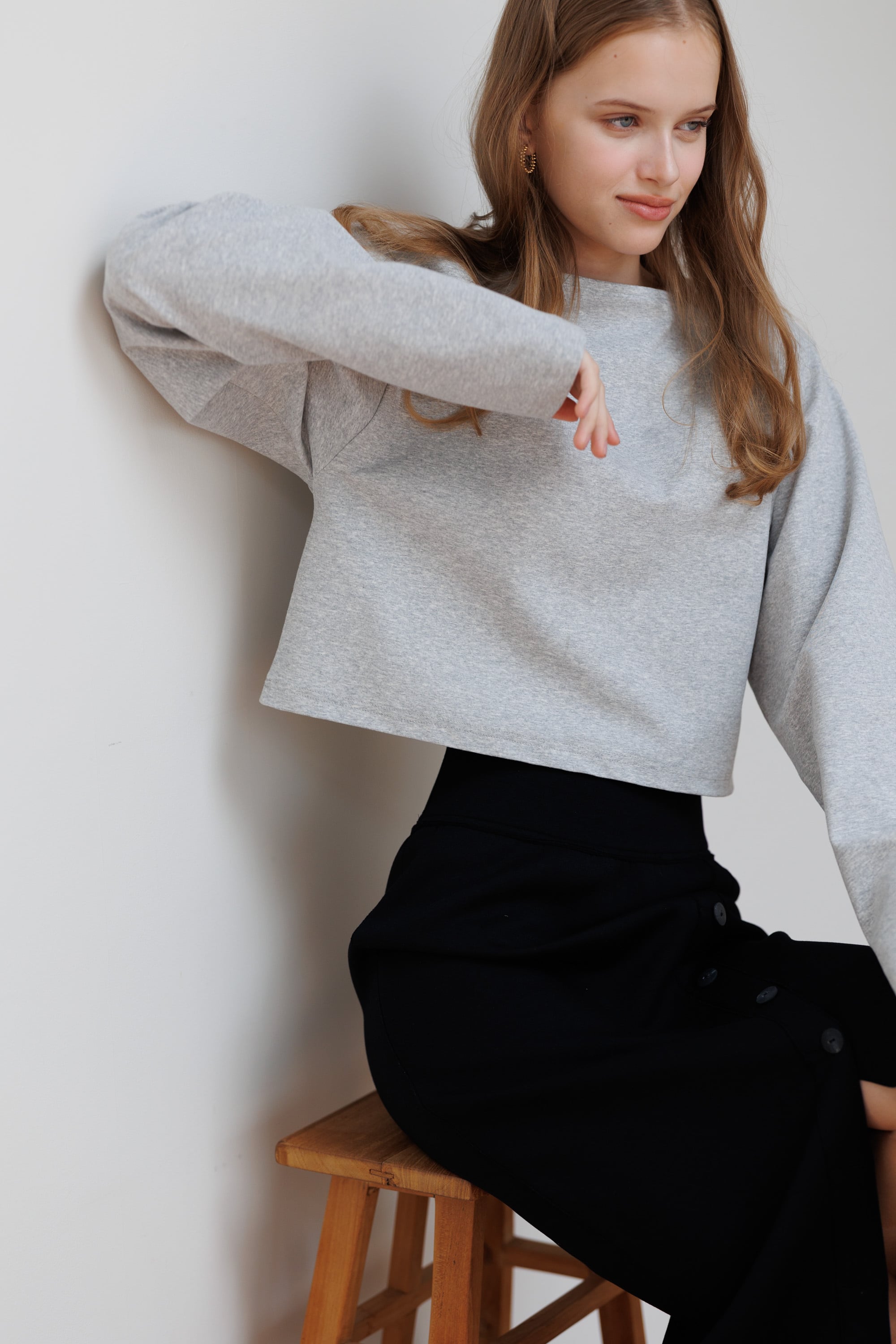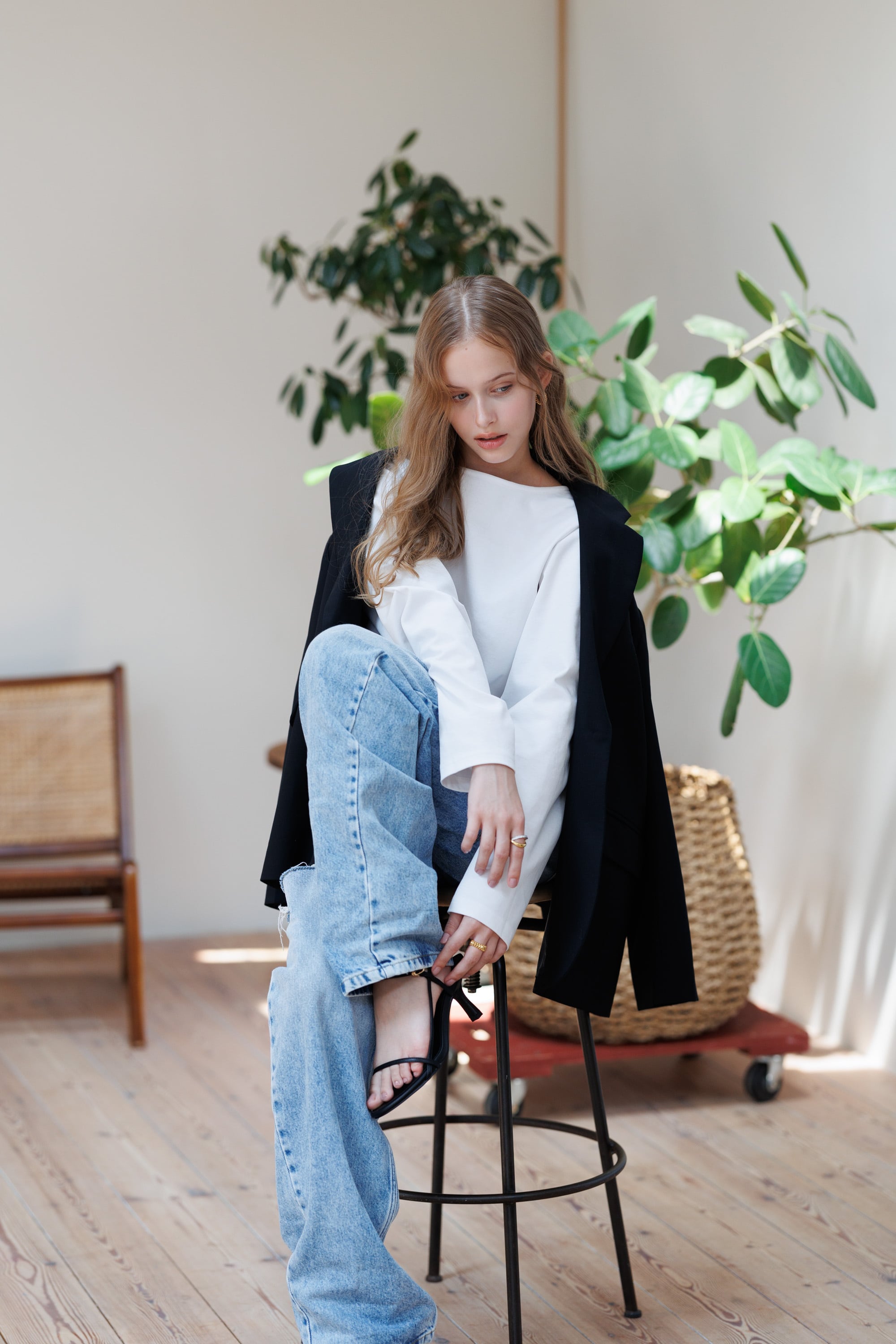 ほんのりゆとりのあるシルエットと長めの袖丈で女性らしいリラックス感をプラス。