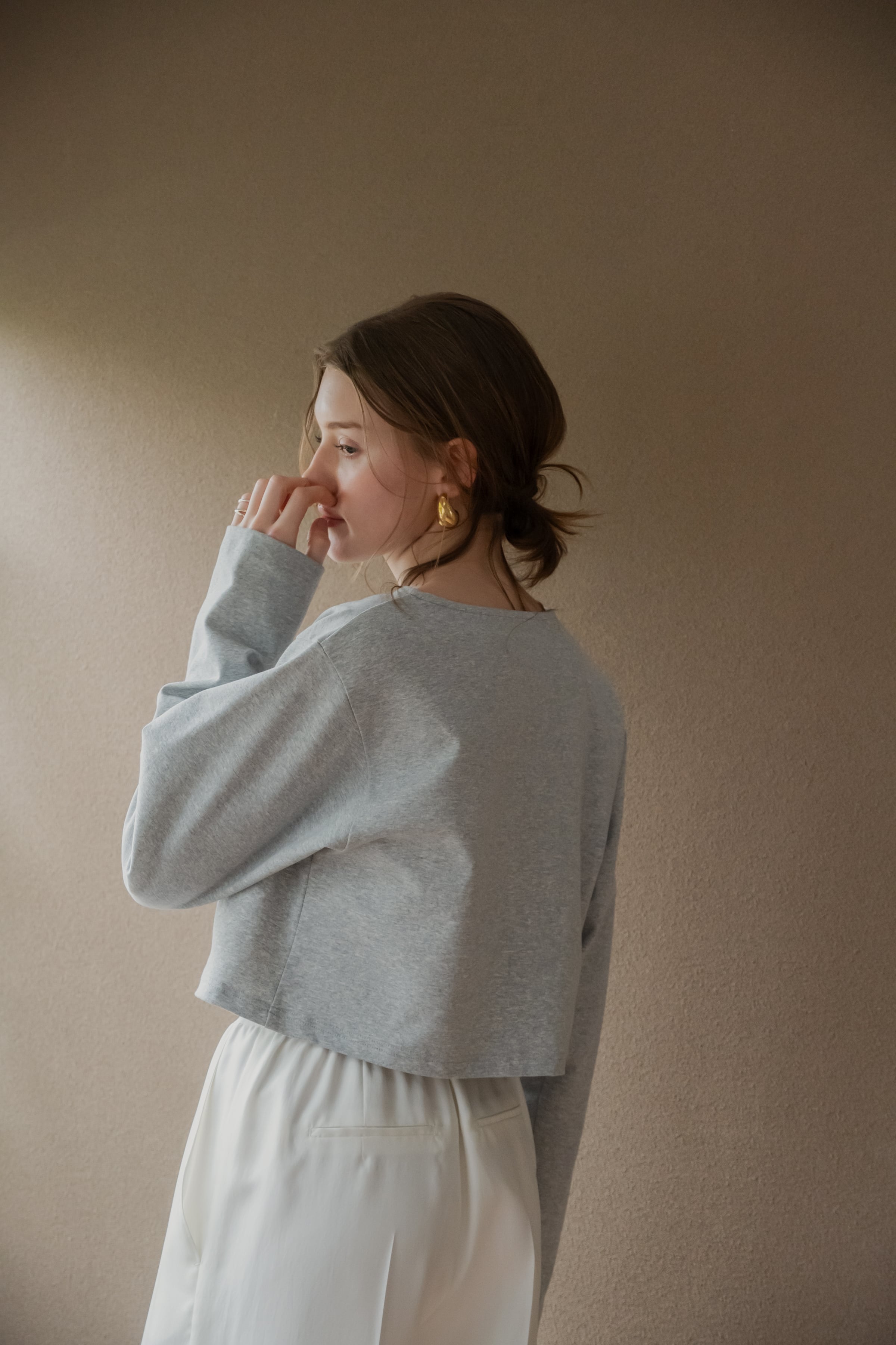 絶妙なクロップド丈ロンT。