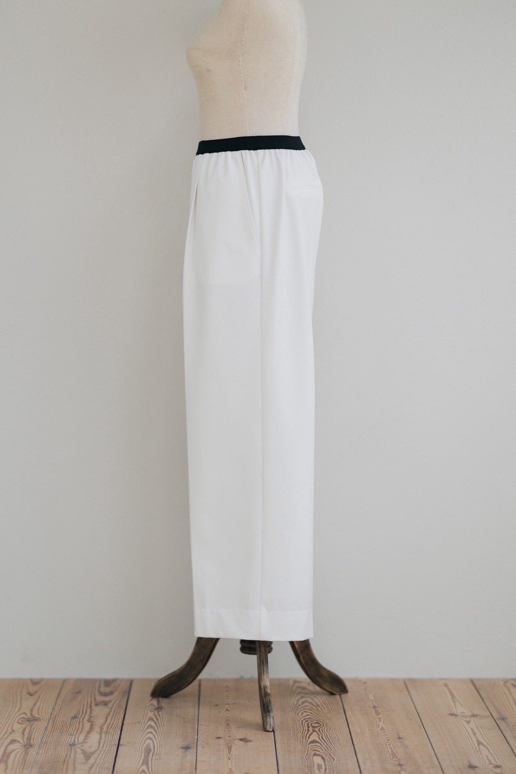 ウエストはオールゴム仕様で1日楽ちん。しなやかでオチ感のある上質な生地を使用し、