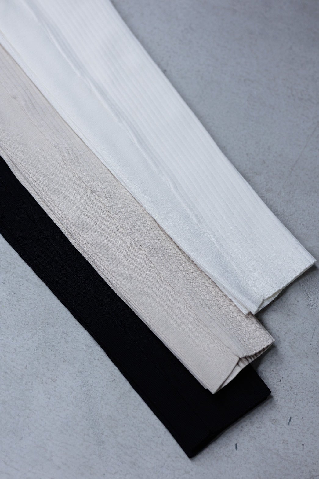 リブ編みは、糸をたっぷり使った細かい編み地にすることで薄手ながらもハリと強さがあり