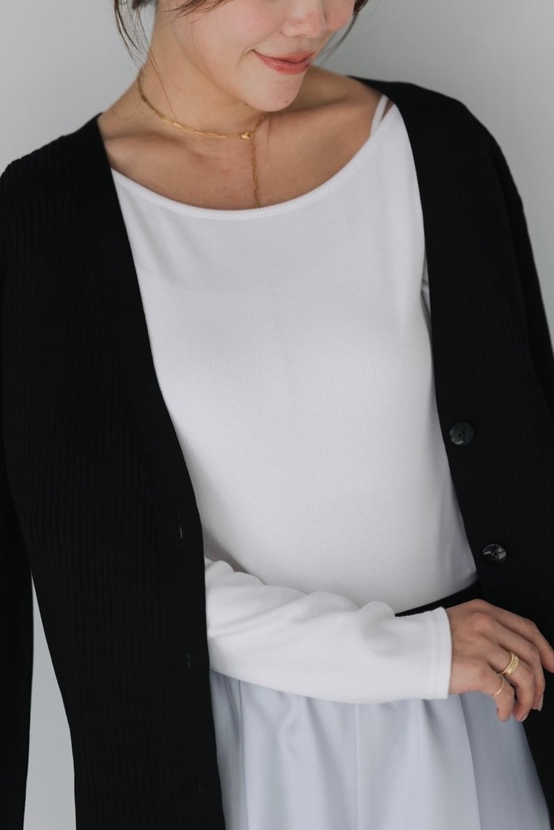 柔らかくしなやかに身体に沿うリブ素材は締め付け感がなくストレスフリーな着心地