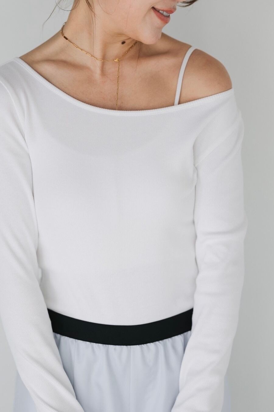 肩を少し落としワンショルダーとしても着用が可能。