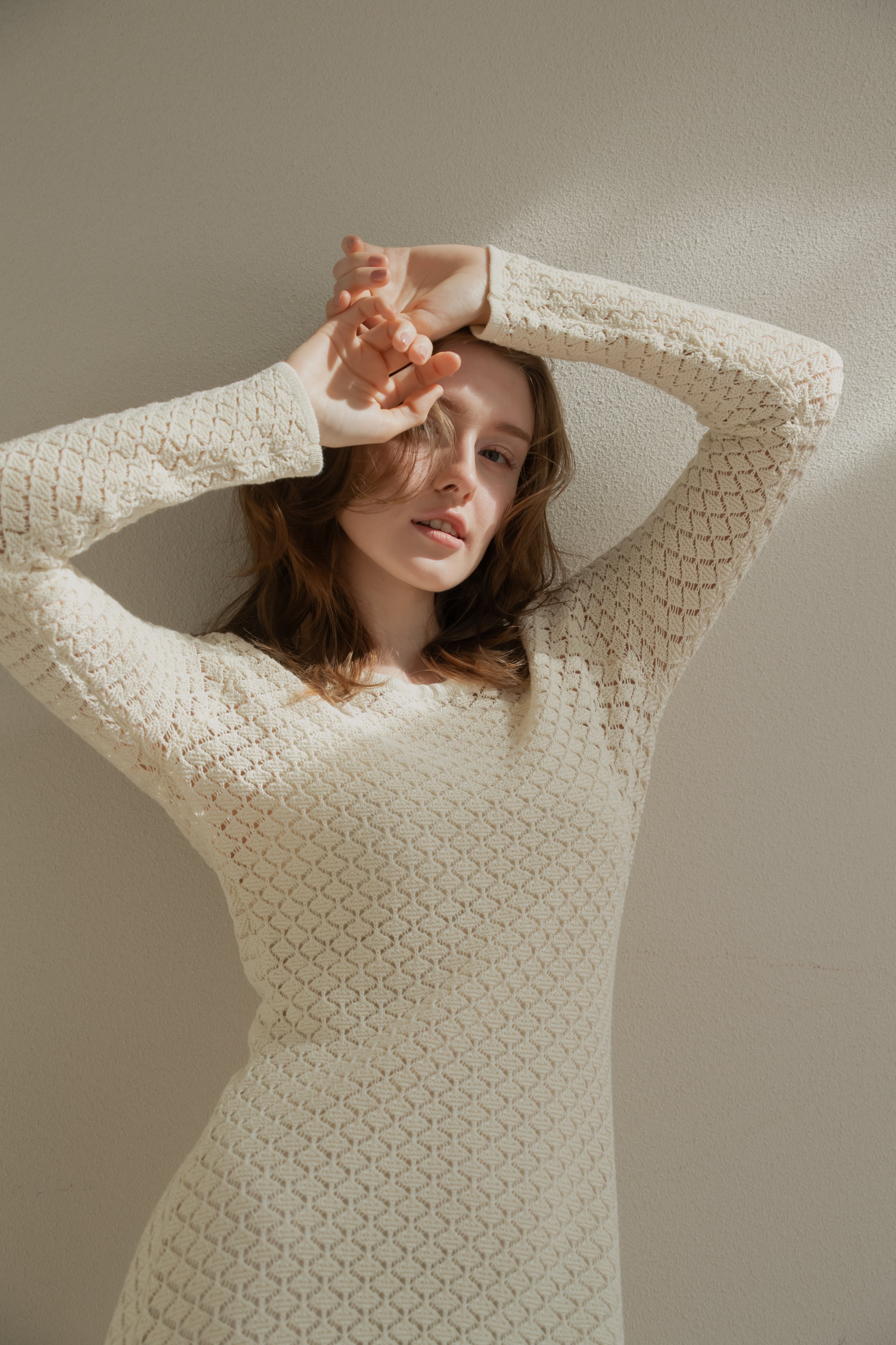 一枚編み上がるのに3時間を要する特別なニットワンピース。