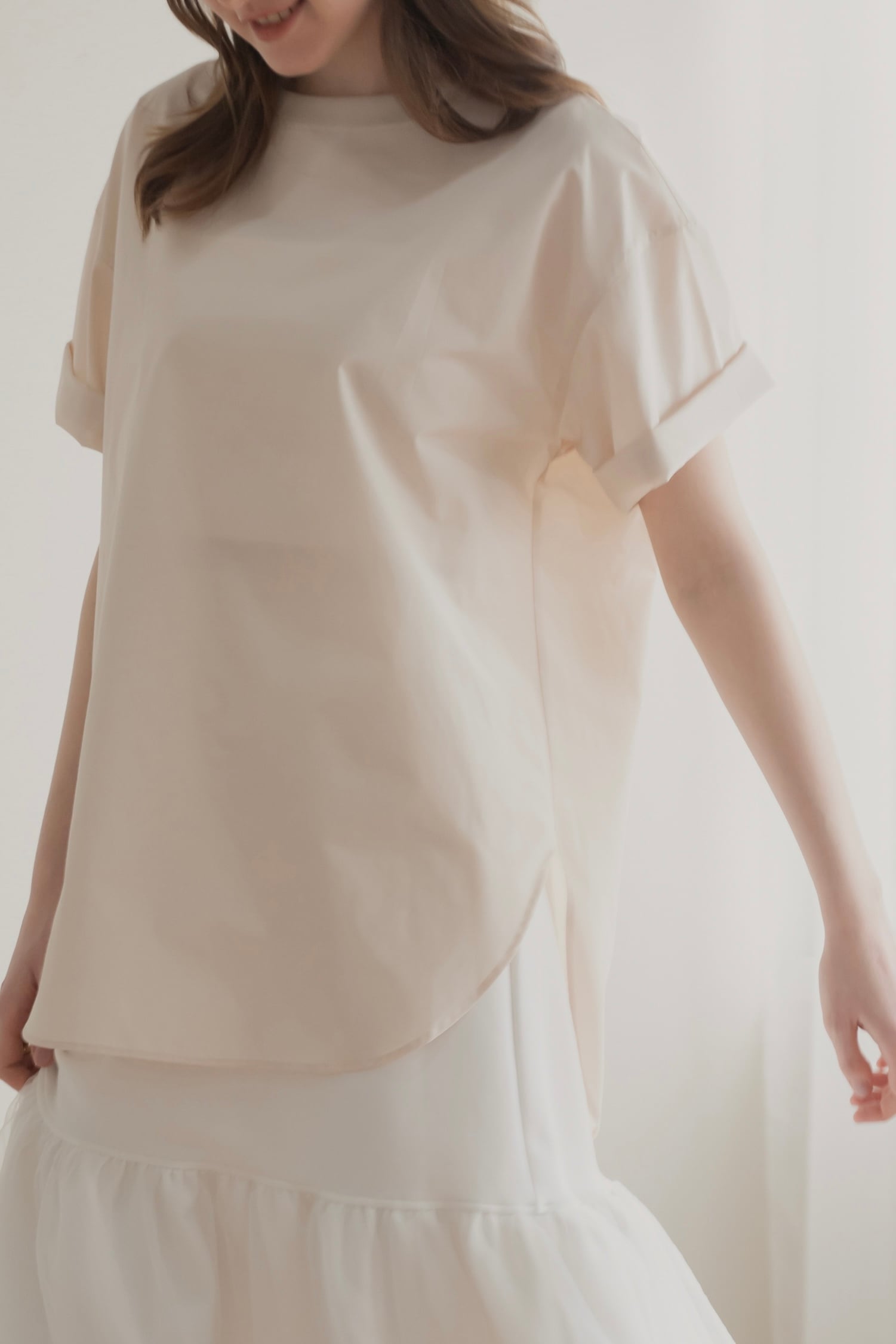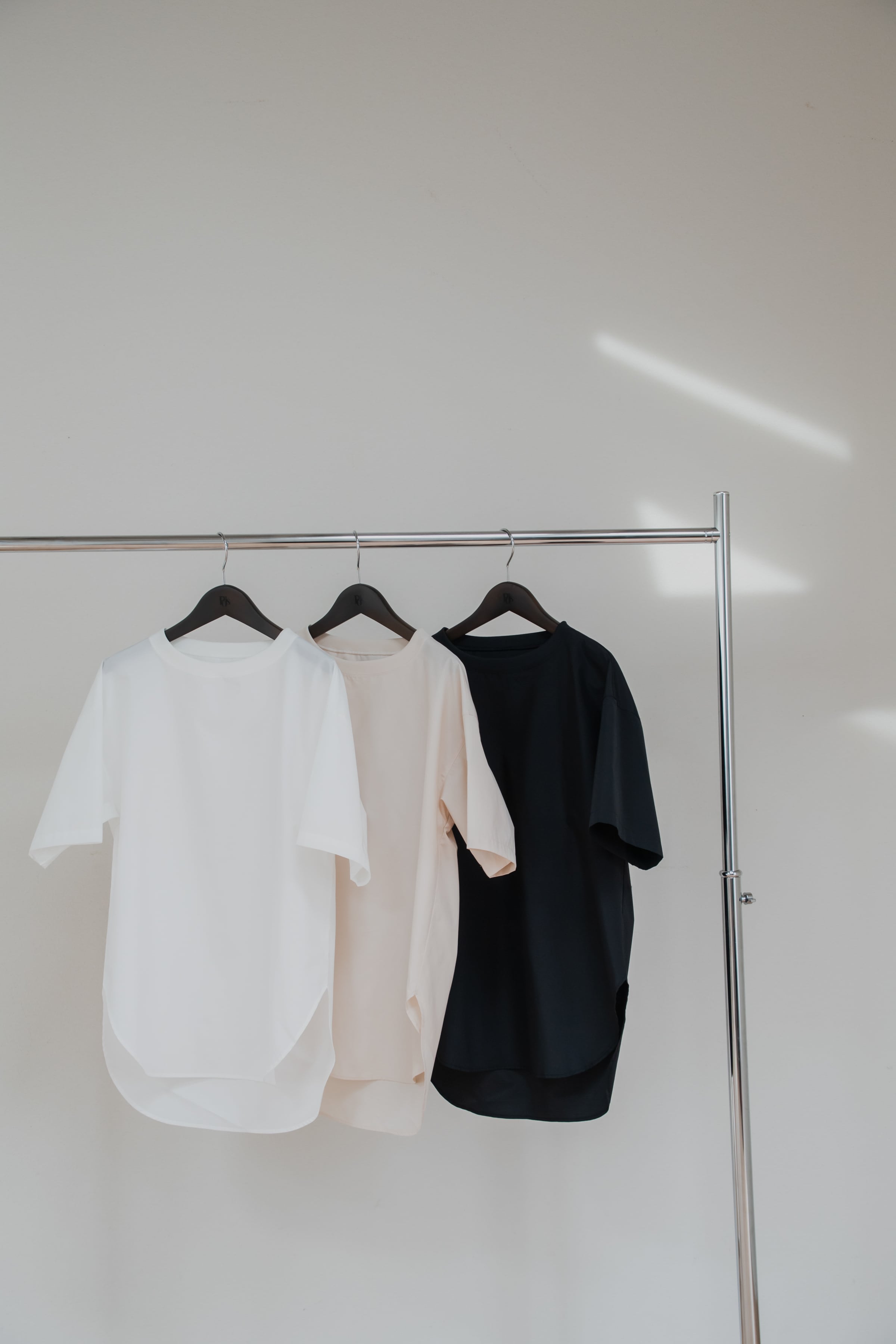 Tシャツの手軽さはそのままにブラウスの上品さをプラス。