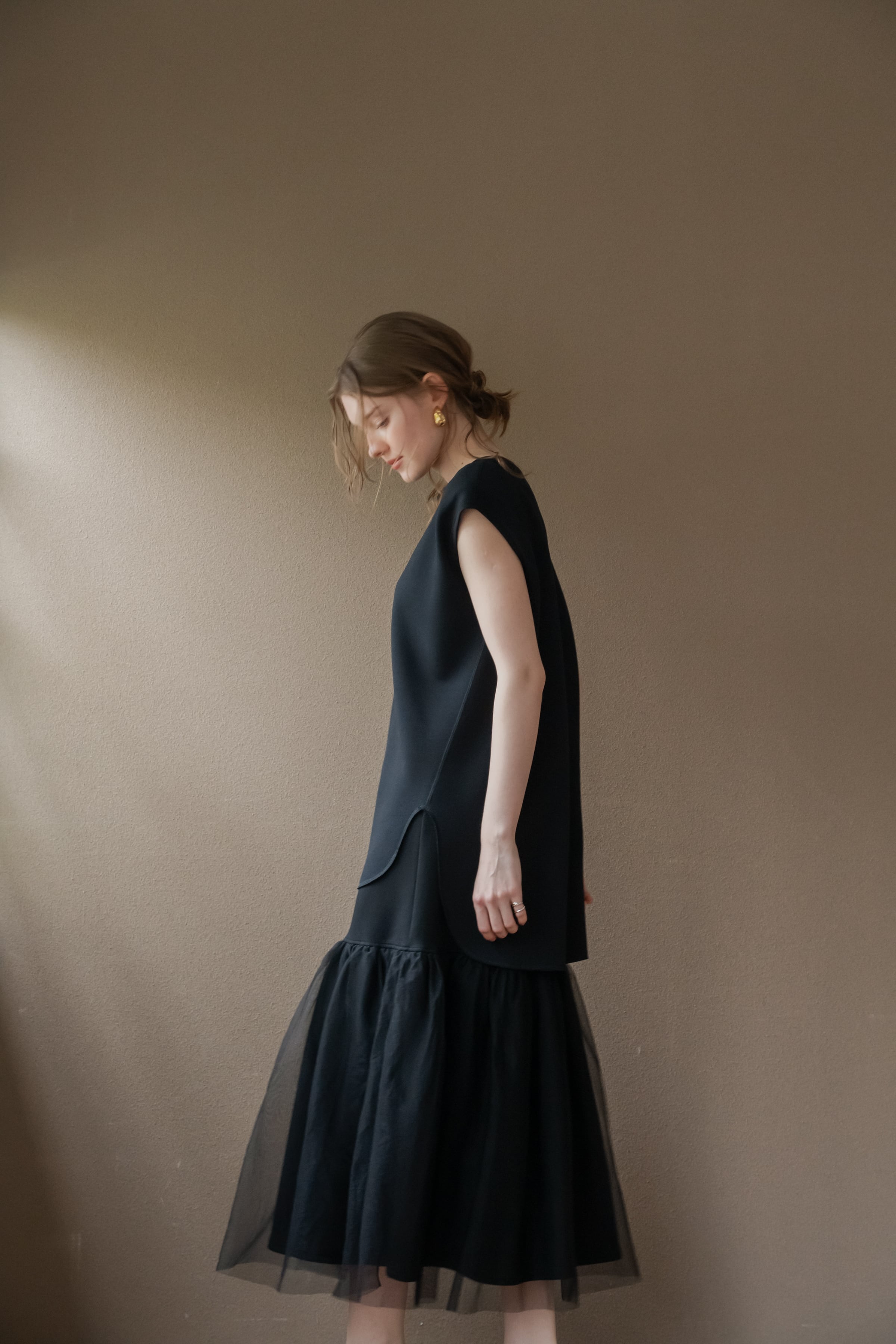 動くたびにふわっと揺れるチュールがシンプルなコーデを格上げしてくれます。